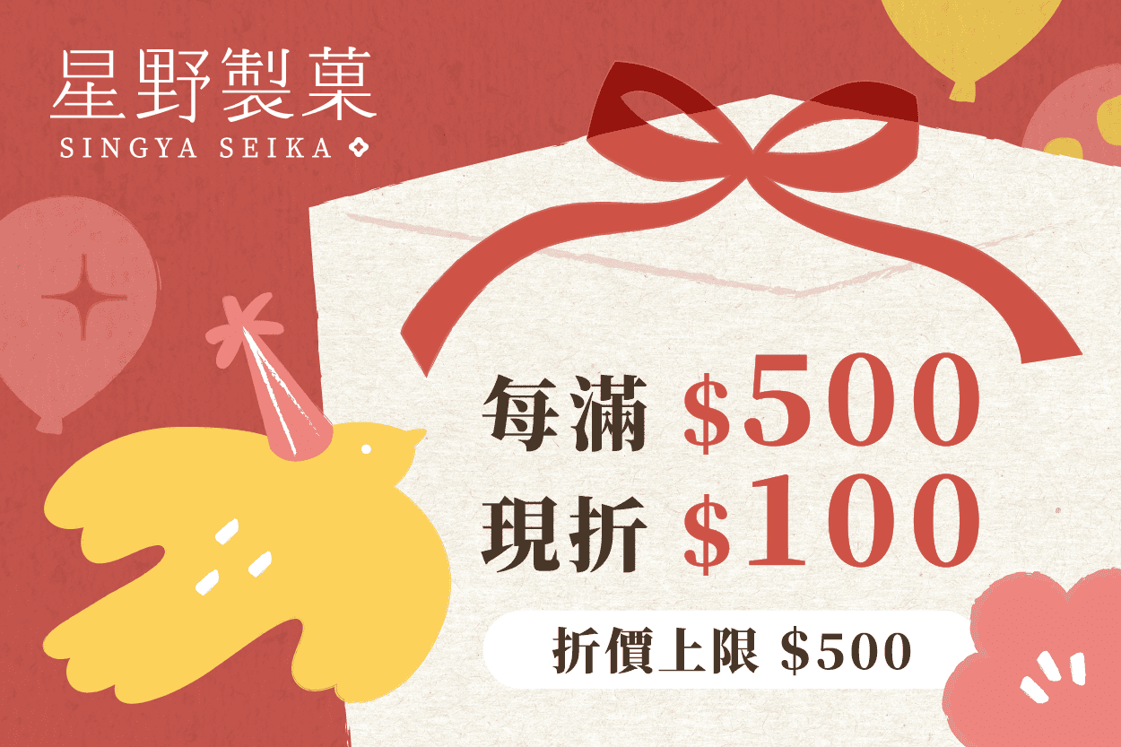 銅鑼燒等經典日式菓子禮盒,每滿$500,現折$100,最高折抵上限$500。