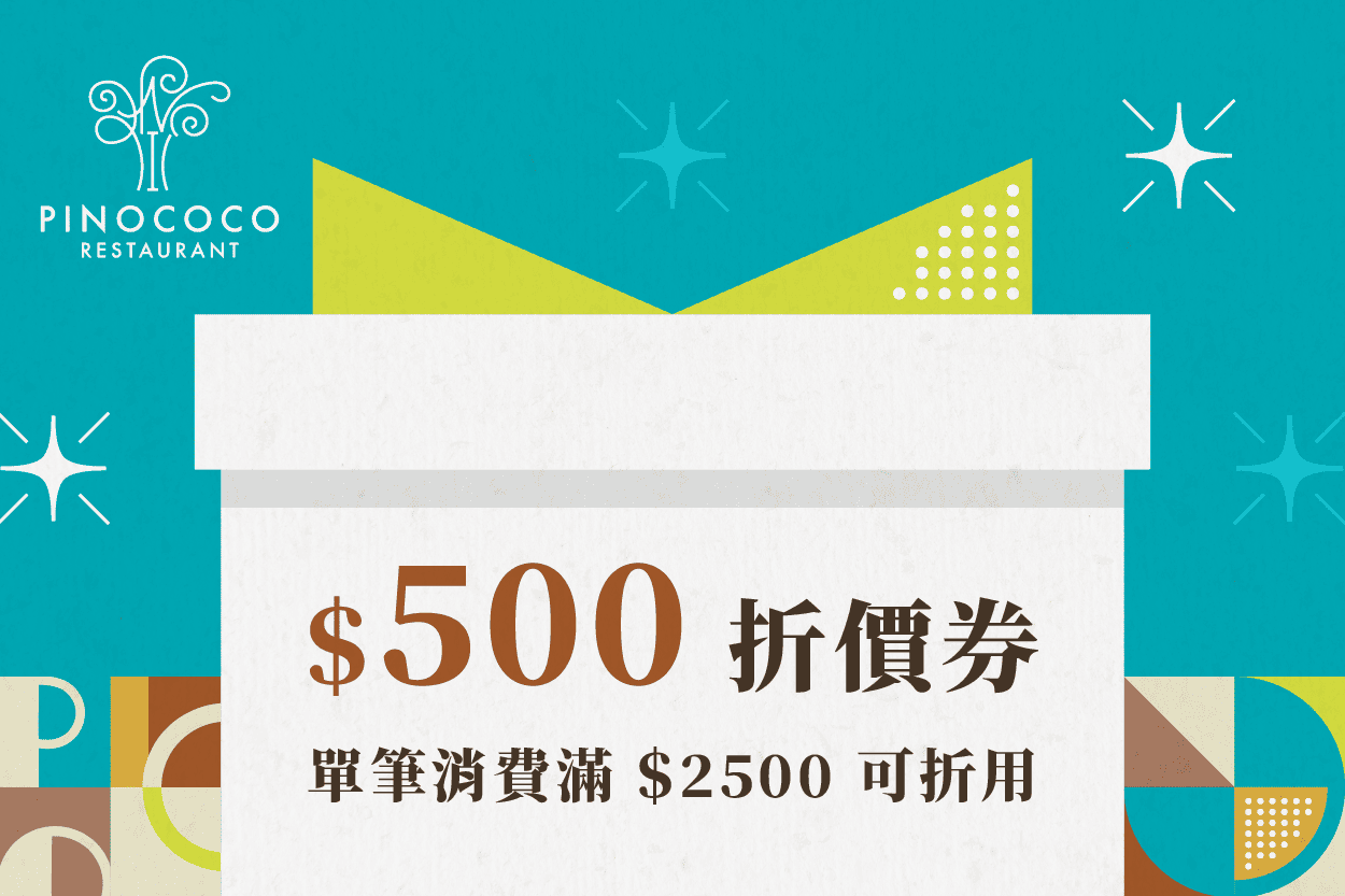義式料理 單筆消費滿$2500,折用$500。